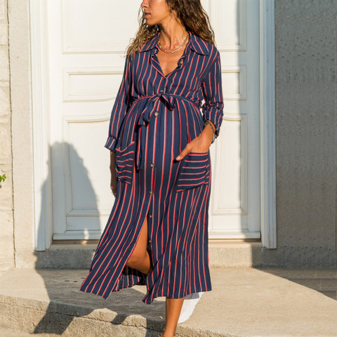 Maternity Loose Stripe Shirt Dress
