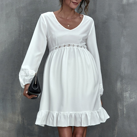 Maternity Cute Long Sleeve Lace Mini Dress
